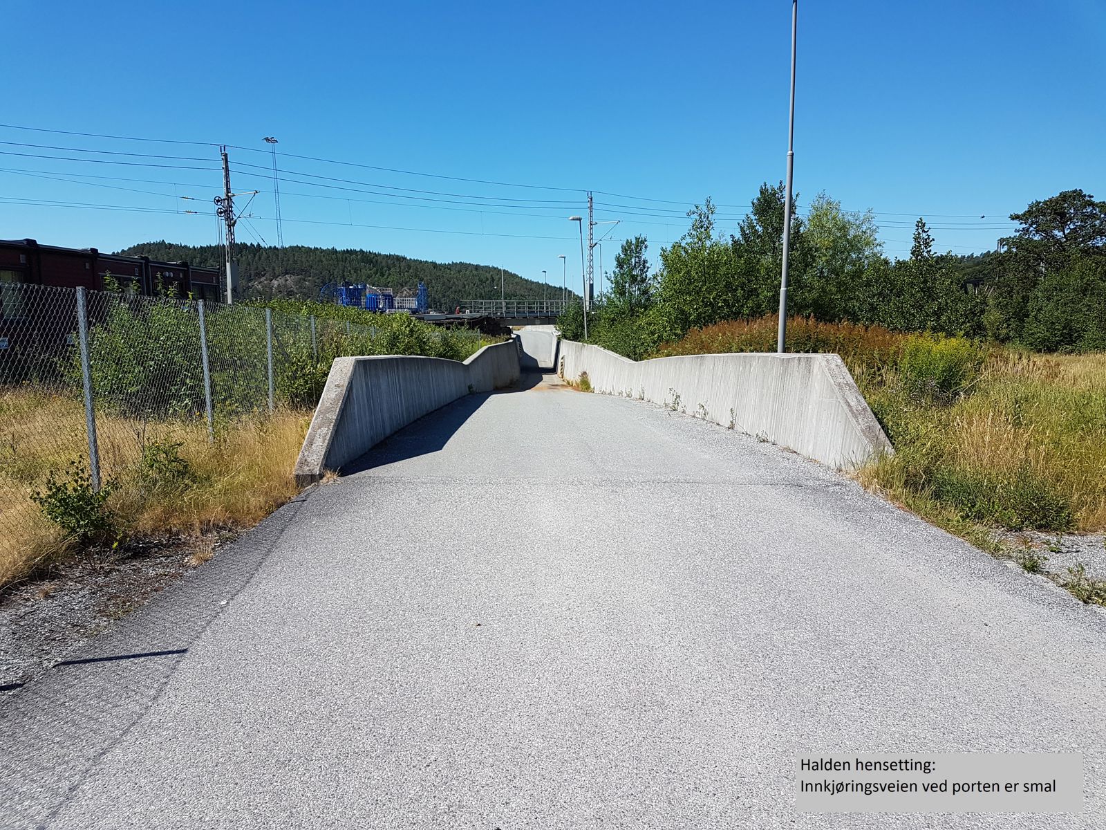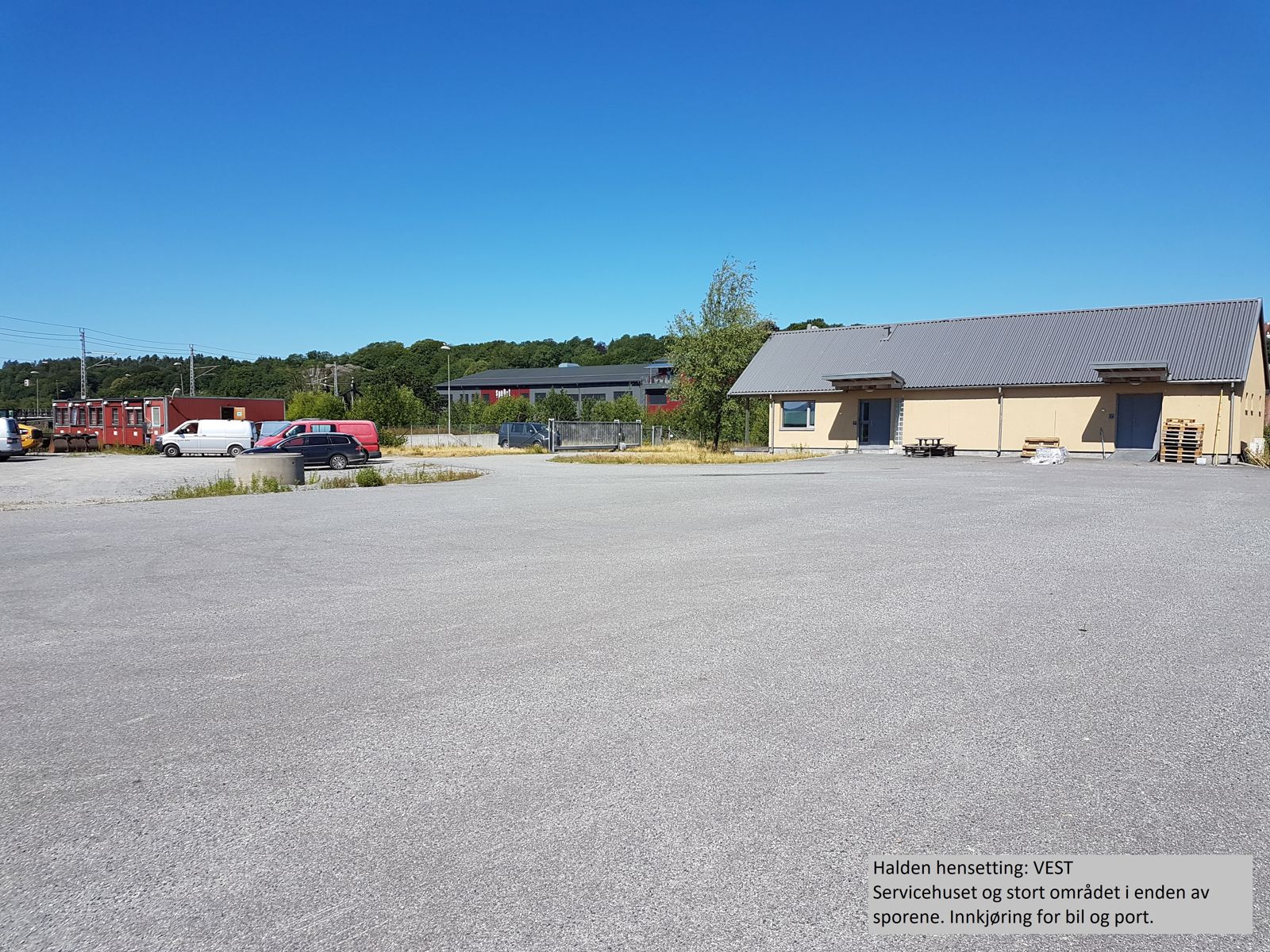 Servicehus og innkjøring for bil i Halden hensettingsområde vest.
