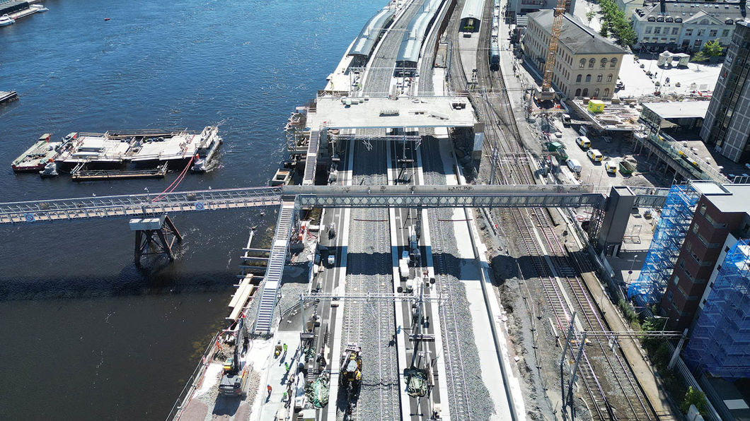 I sommer flytter vi all togtrafikken til de nybygde sporene. Det innebærer at reisende i den første tiden etter sommerarbeidene ikke kan gå rett fra stasjonsbygningene til plattformen.