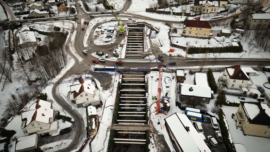 Endelig er vi i gang med å grave ut en tunnel i løsmasser. Vi har holdt på i ett og et halvt år med å forsterke grunnen, men like før jul kom selve utgravingen i gang.