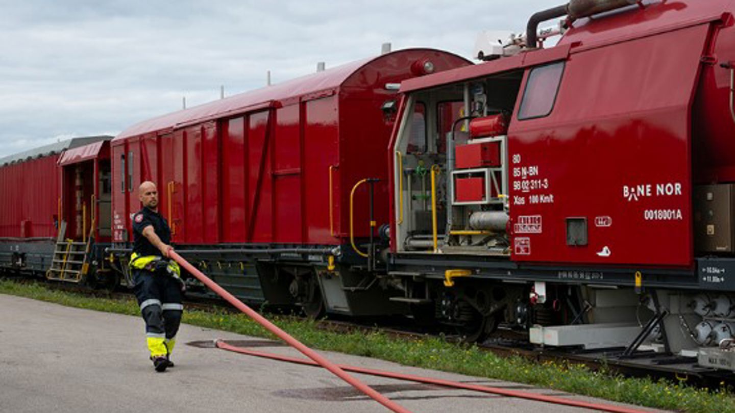 Hvis alarmen går, skal redningsmannskapene gjøre seg klare til innsats på jernbanen. I løpet av 15 minutter skal Bane NORs nye brann- og redningstog være bemannet og på vei, med 90 000 liter vann og skum.