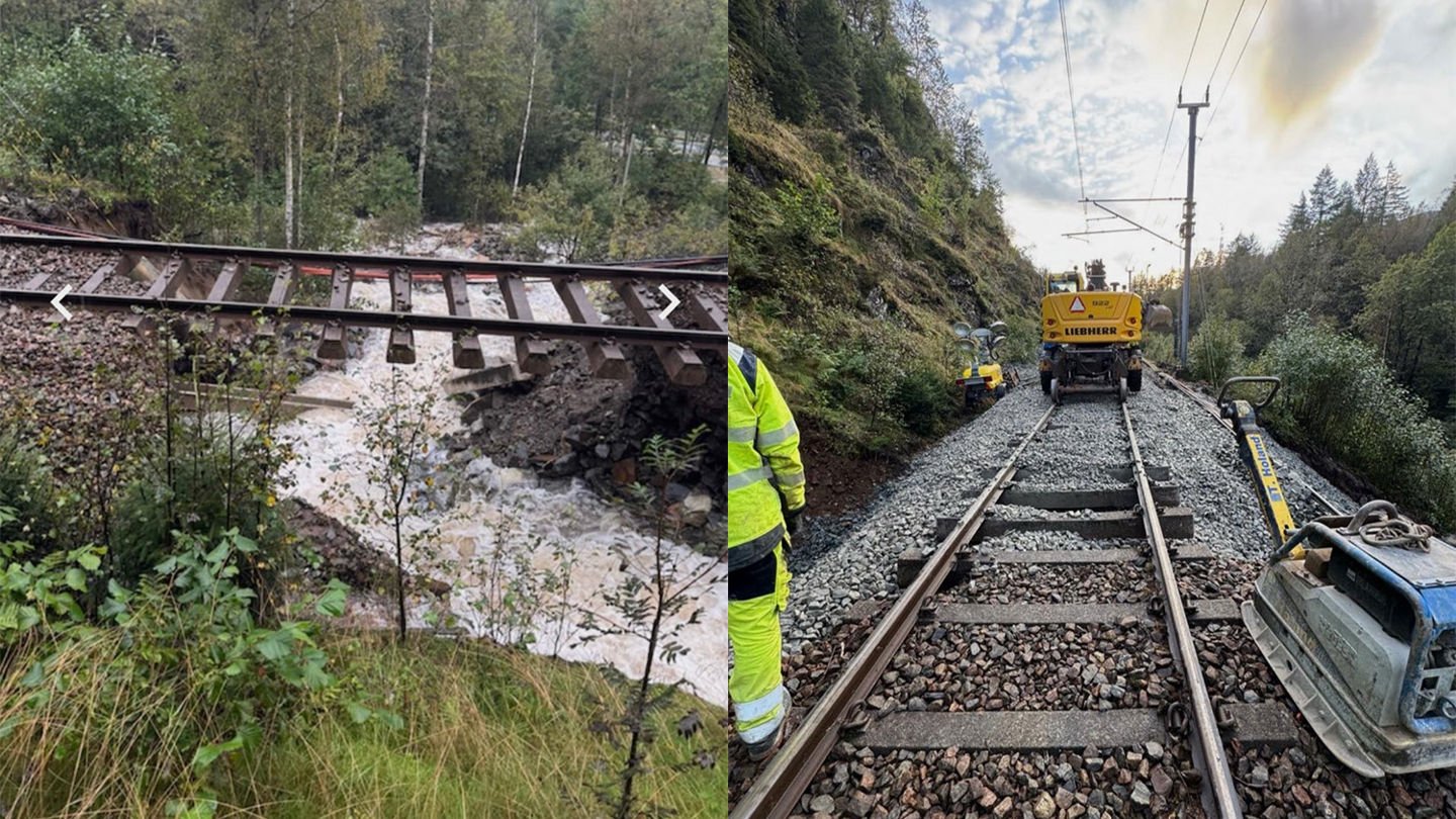 Hard jobbing og godt vær gjør at arbeidet med å reparere skadene etter raset ved Verma stasjon har gått raskere enn tidligere antatt. Banen åpner for trafikk 6. oktober.