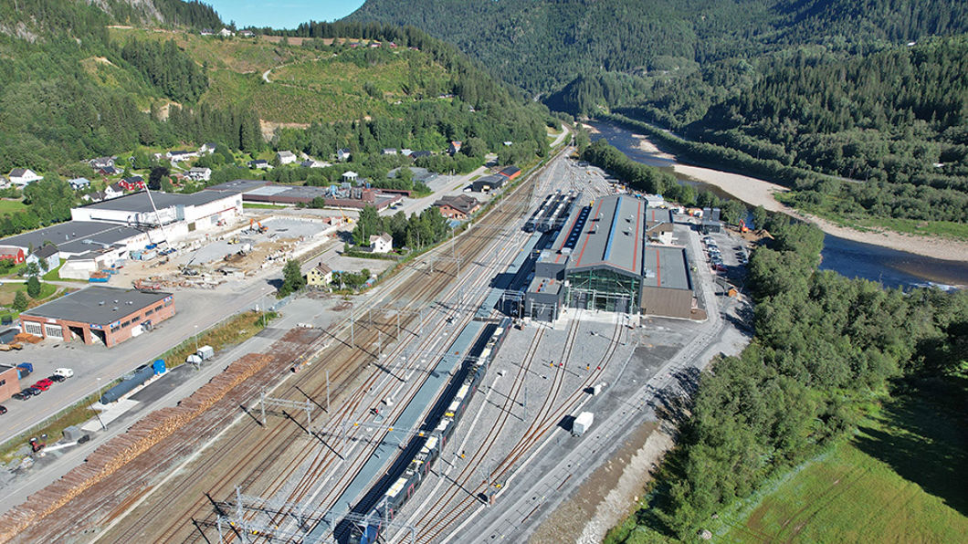 Nye Støren verksted viser muskler: laserstyrte jekker kan løfte 280 tonn tog nesten to meter over bakken for vedlikehold.