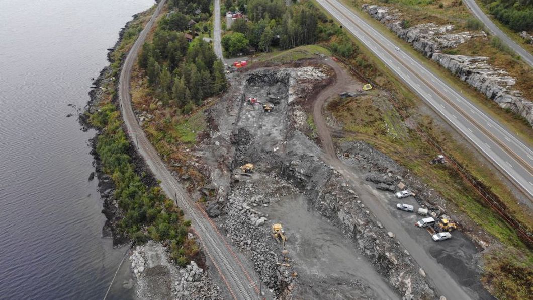 De neste tre ukene vil Bane NOR og vår hovedentreprenør MossIA sprenge de 20 første meterne av åpningen til rømningstunnelen som kommer ut ved Mossehallen. Første salve gikk fredag 12. august.