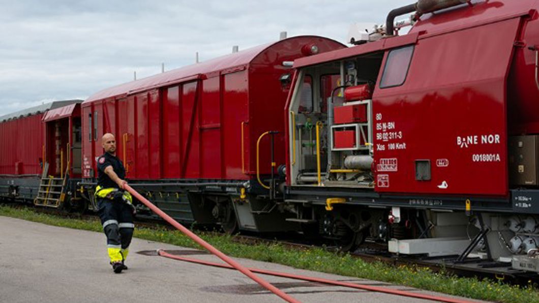 Hvis alarmen går, skal redningsmannskapene gjøre seg klare til innsats på jernbanen. I løpet av 15 minutter skal Bane NORs nye brann- og redningstog være bemannet og på vei, med 90 000 liter vann og skum.