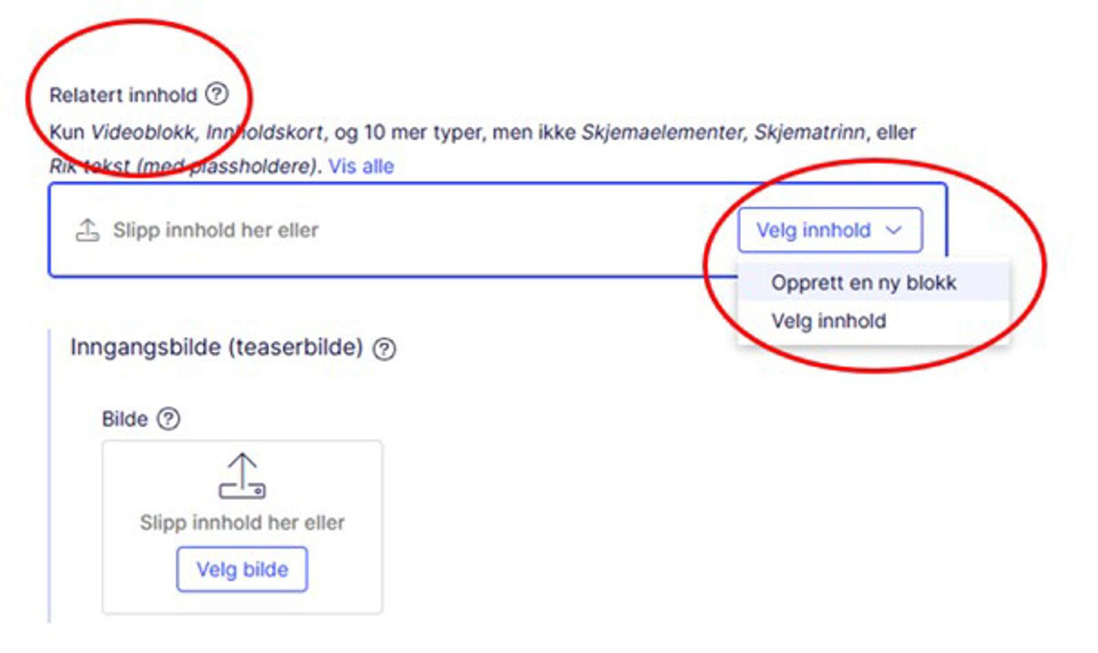 Ønsker du det, klikker du på boksen "Velg innhold" og "Opprett ny blokk".