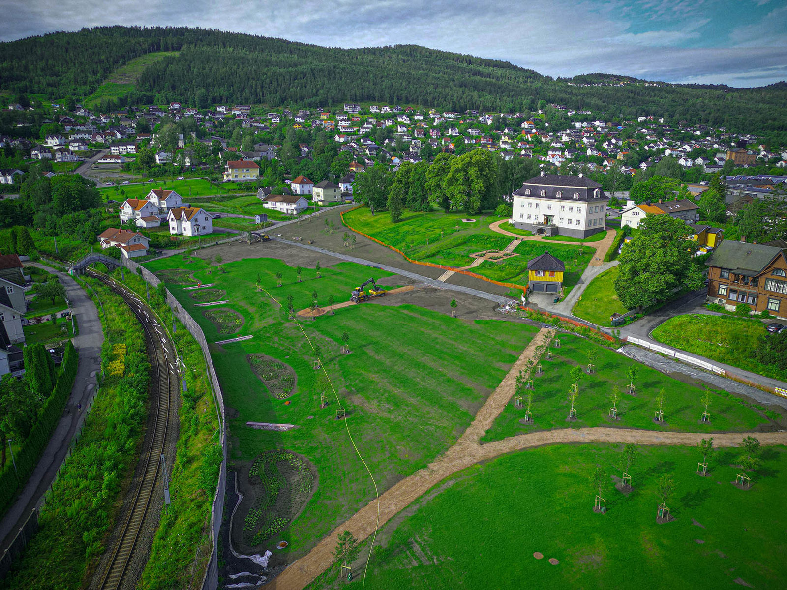 Anleggsområdet mellom Sundhaugen og Smithestrømveien, over den nye jernbanetunnelen, ferdigstilles som grøntareal.