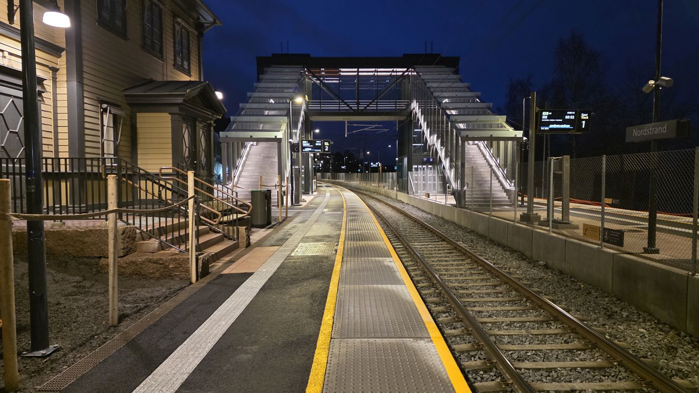 Nordstrand stasjon er bygget om, for å kunne brukes av nye lokaltog. Nye, lengre plattformer og ny overgangsbru er på plass, og stasjonen er åpnet for persontrafikk.