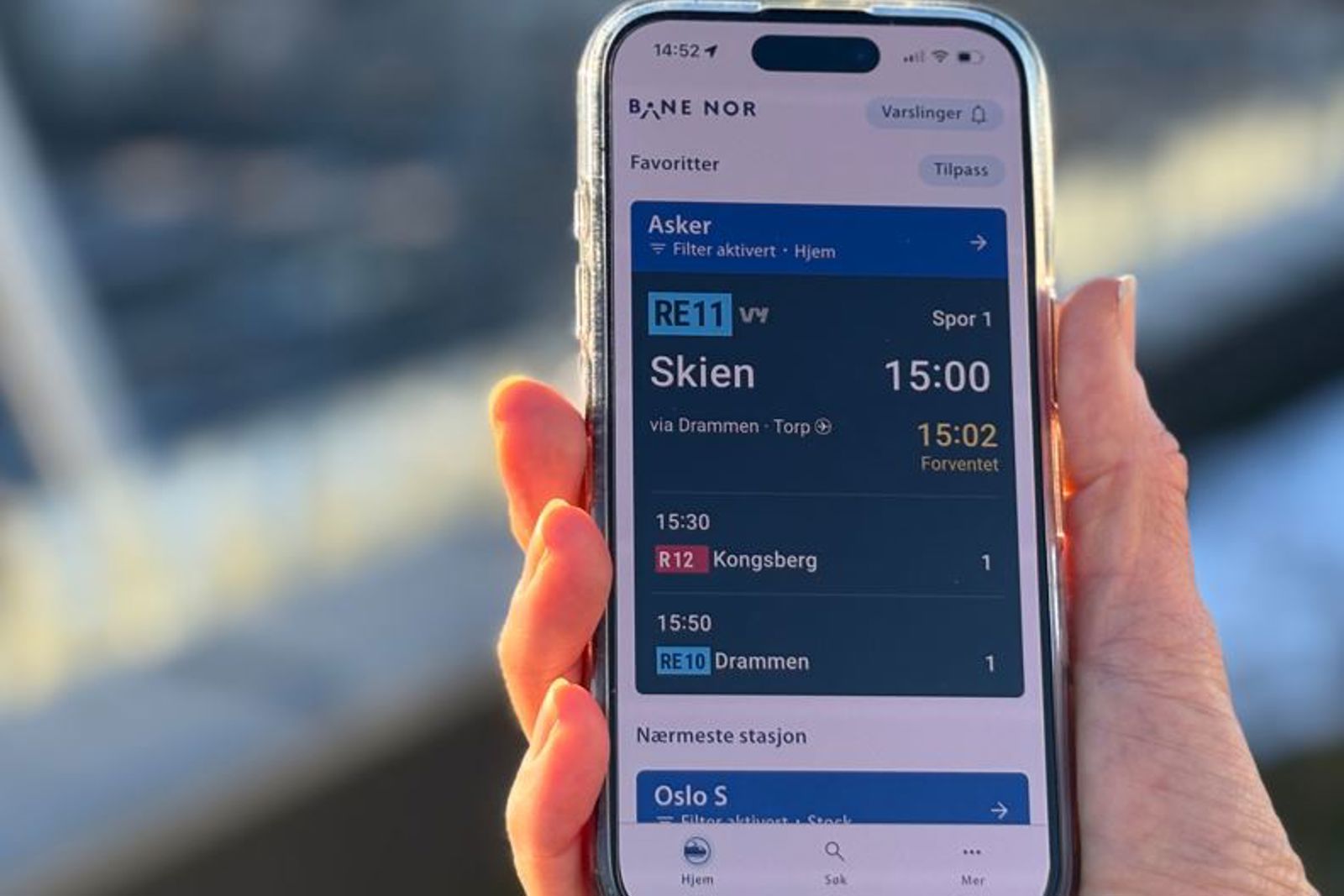 NÅ-appen gir deg samme informasjon som du finner på skjermene på stasjonen. Foto: Bane NOR