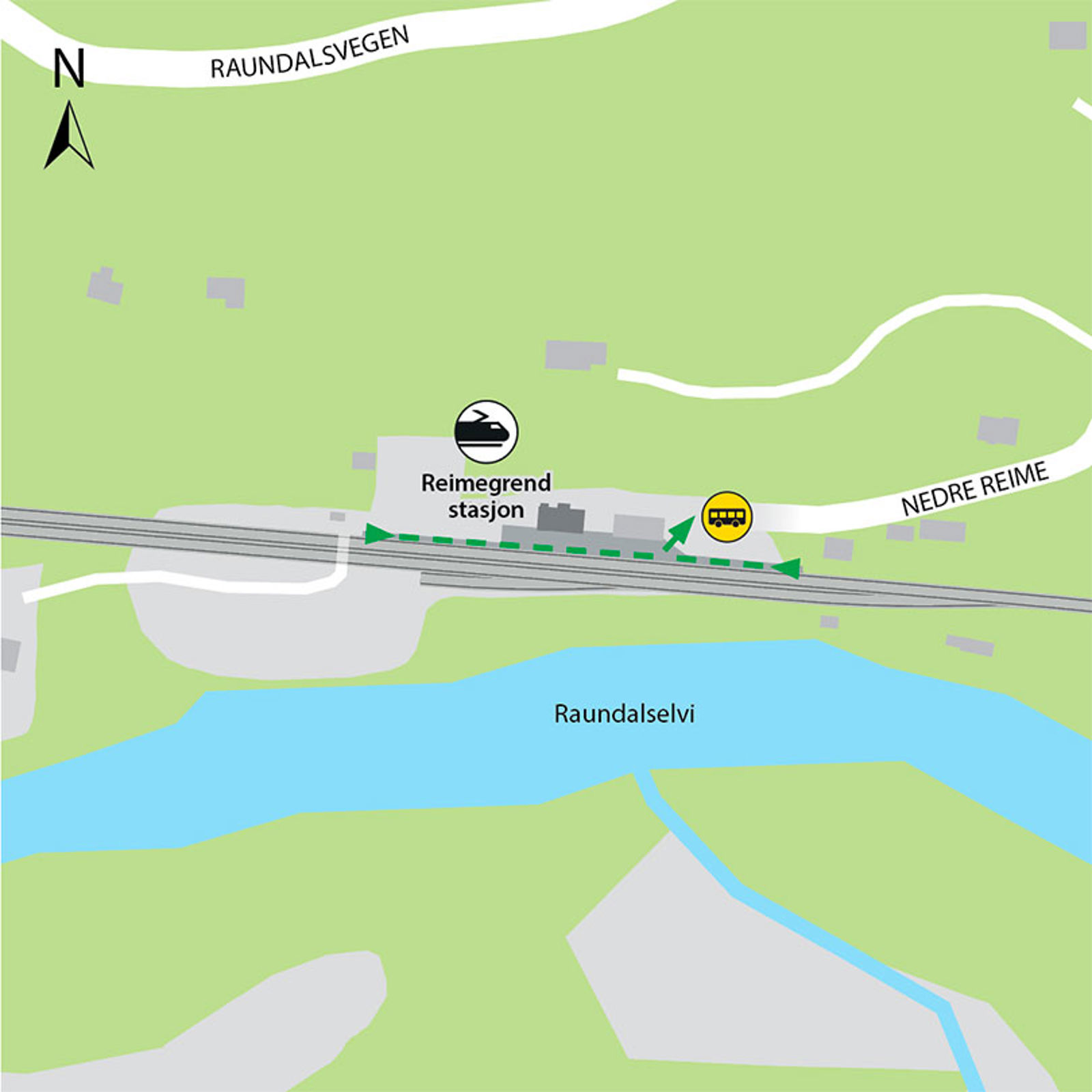 Reimegrend stasjon på Voss ligger på Bergensbanen. Herfra kan du ta toget mot Bergen, Voss og Myrdal.